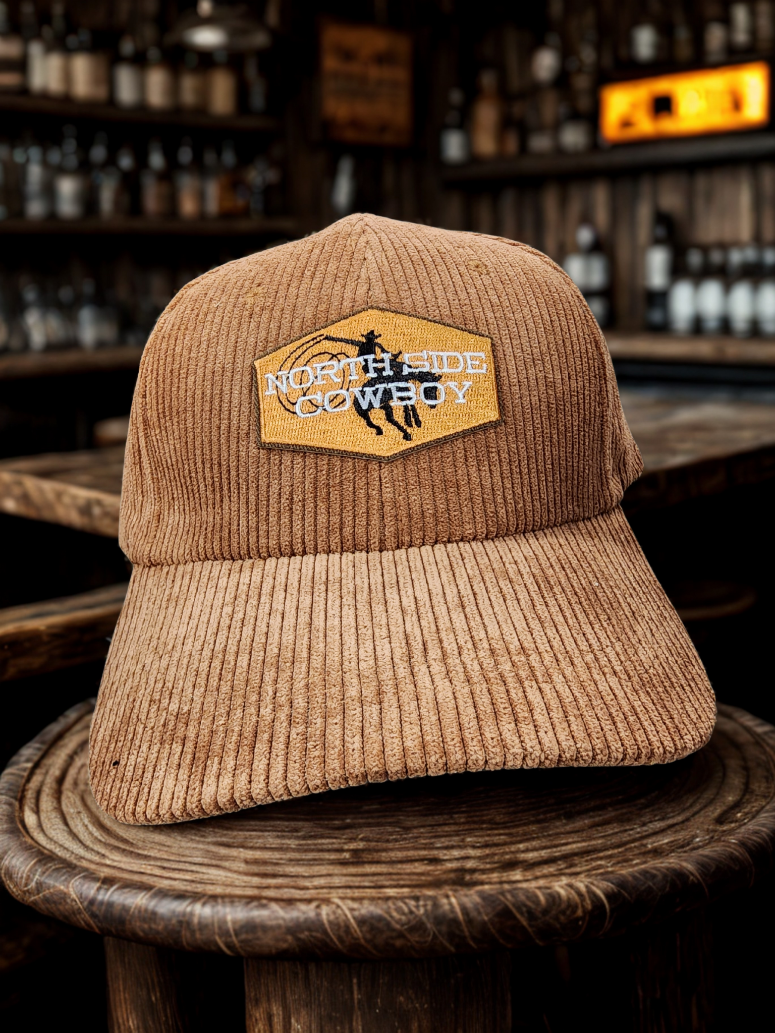 Rope in the grit with this vintage-style corduroy cap. Embroidered with a bronc rider patch that reads North Side Cowboy, it’s soft, rugged, and ready for dusty roads or dive bars. One size with adjustable fit.